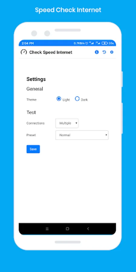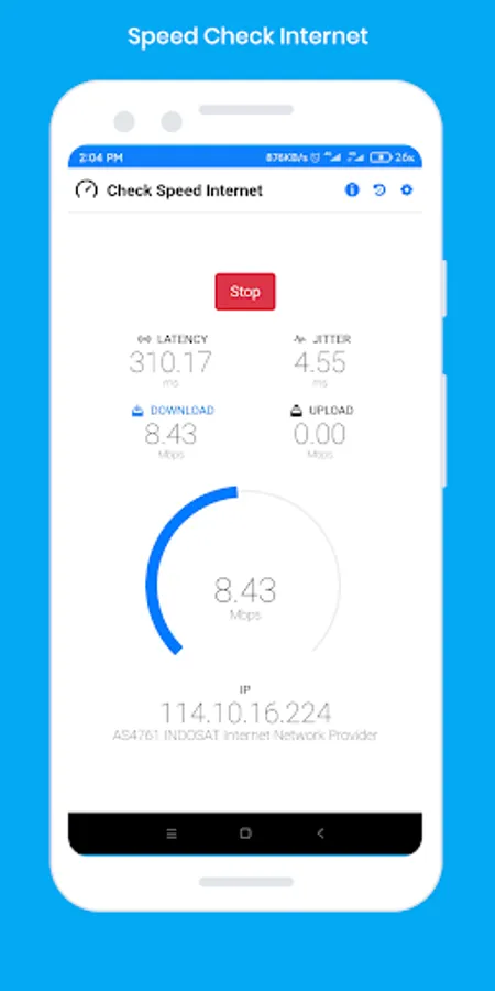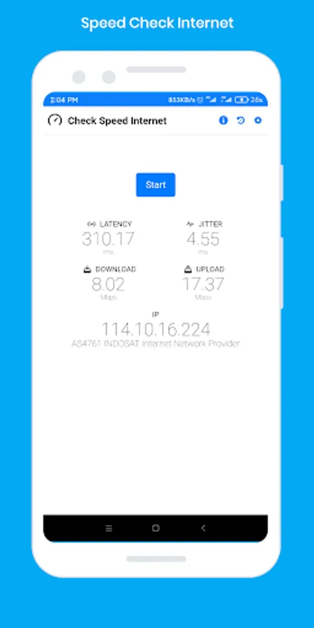 Check Speed Test Internet is a mini application to check the network speed of your internet connection that supports mobile networks such as 5G, 4G and Wi-Fi connected to your device.
