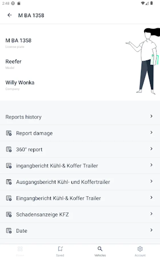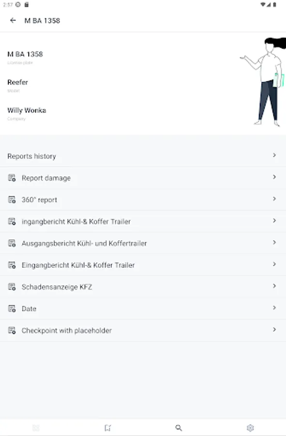 Our vehicle inspection app allows you to check registered vehicles, record individual damages, or capture the overall status of a vehicle.