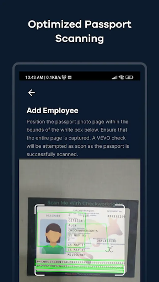 The CheckWorkRights android app allows you to perform an immediate VEVO check simply by scanning your employees' passports.