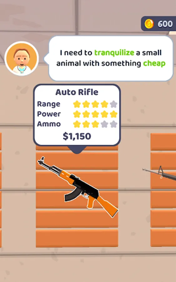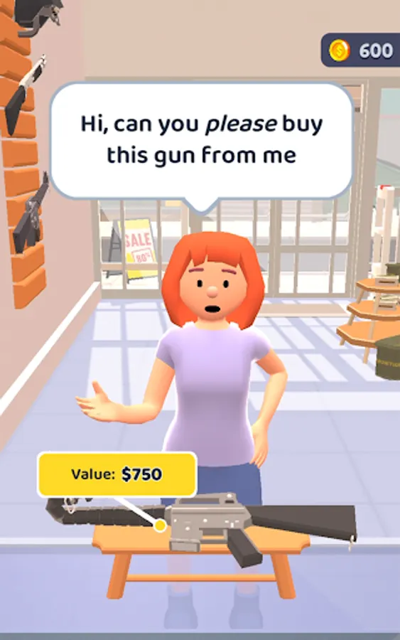 Be careful with the customers coming in the store, you never know who plans to sell you a defective gun or cheap weapons! Check and rate the guns right before making an offer. The choice is yours, and so is all that cash. Aim to make a profit in the business to become the biggest gun tycoon!