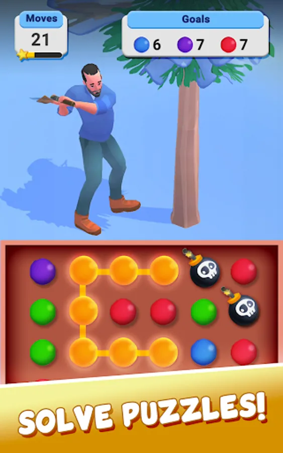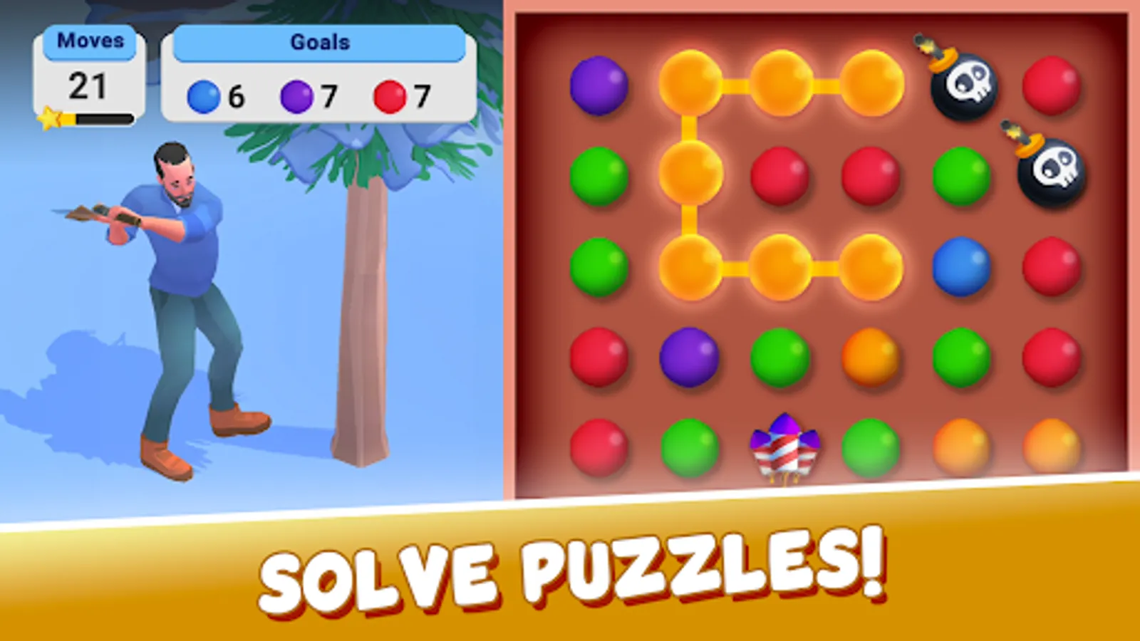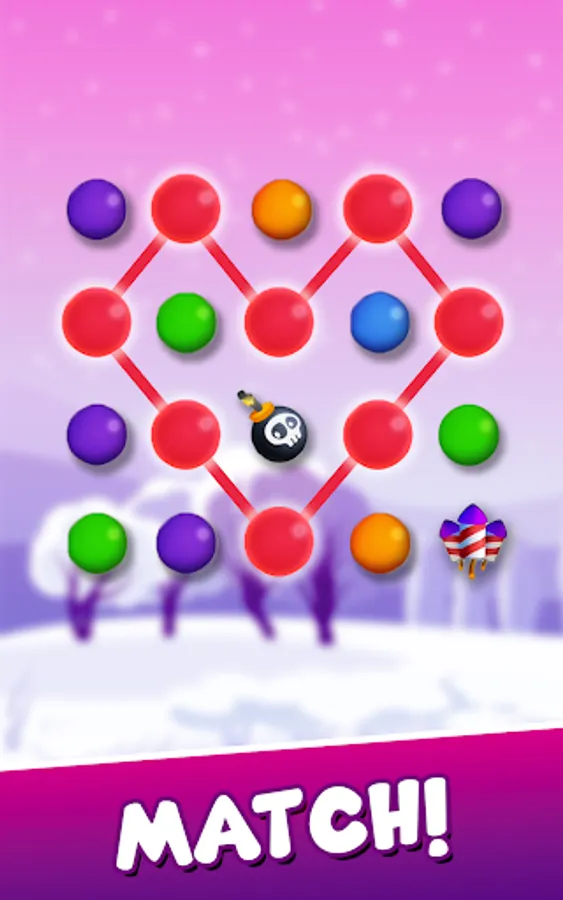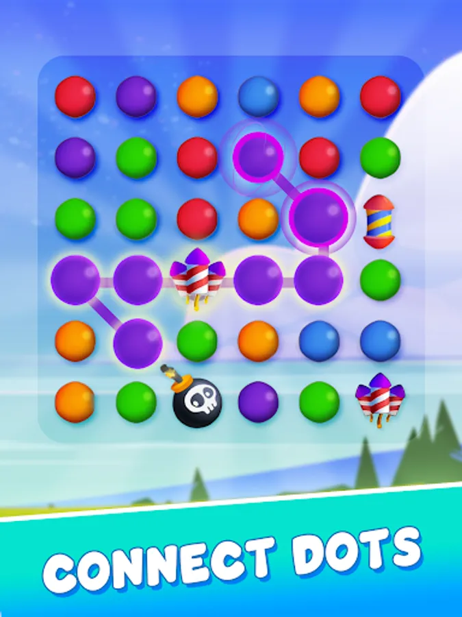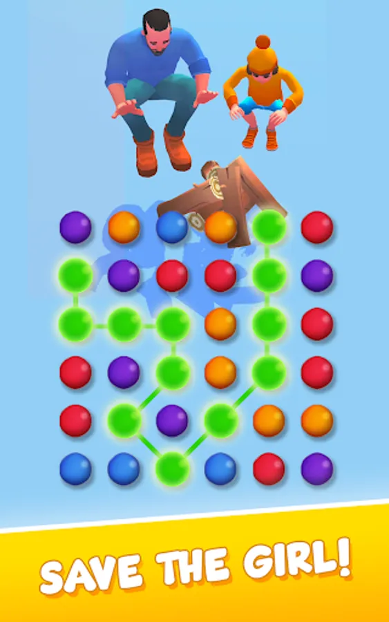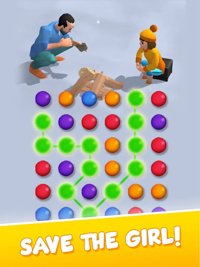 Every move counts as you connect colorful matching dots to complete essential tasks to try and help them survive. Link the same colored bubbles to cut wood for shelter, start fires to keep warm, mine stones for tools, go fishing for food, and much more. Each brain teaser level is a critical step and will determine their fate in the wild!
