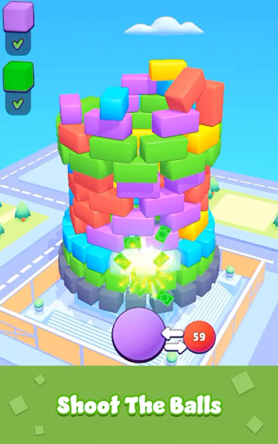 Welcome to the most addictive and colorful tower construction game you'll ever play! Get ready to break, burst, and blast your way to victory as you aim, fire, and shoot colored balls at the towering structure. Your mission? Make that tower fall!