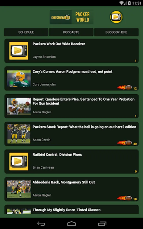 Green Bay Packer Fan? Get the latest Packer news from Cheesehead TV as well as a curated list of sources from all over the web from the mainstream media covering Packer World to the Packer Blogosphere. Comment with fellow die-hard fans. Listen to the latest podcasts & always know the Packers schedule. Join the greatest Packer Fan community on the internet, cheeseheadTV.com