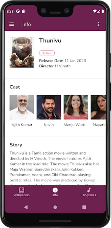You can get Tamil actor Thala Ajith Wallpapers & Ringtones. . The app contains all the details about the Thunivu movie including cast, release date and story.