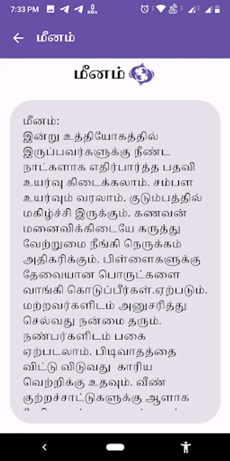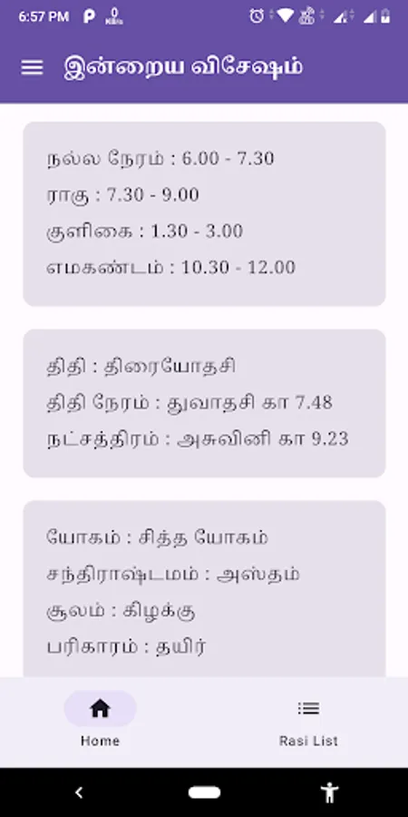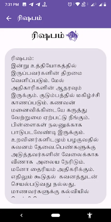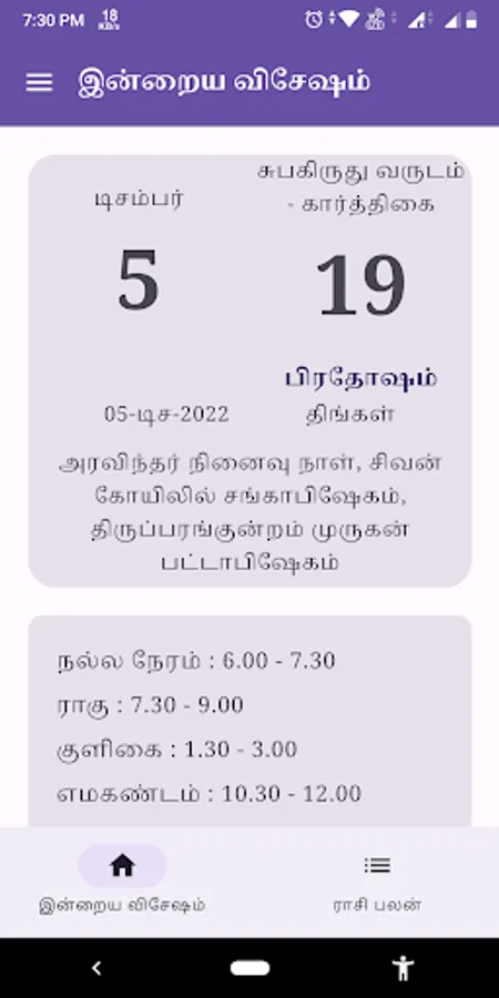 in this Tamil rasipalan app we can know the daily rasipalan of the day , and also we can see the Tamil panchangam calendar. which is very useful to know the daily day info on the application