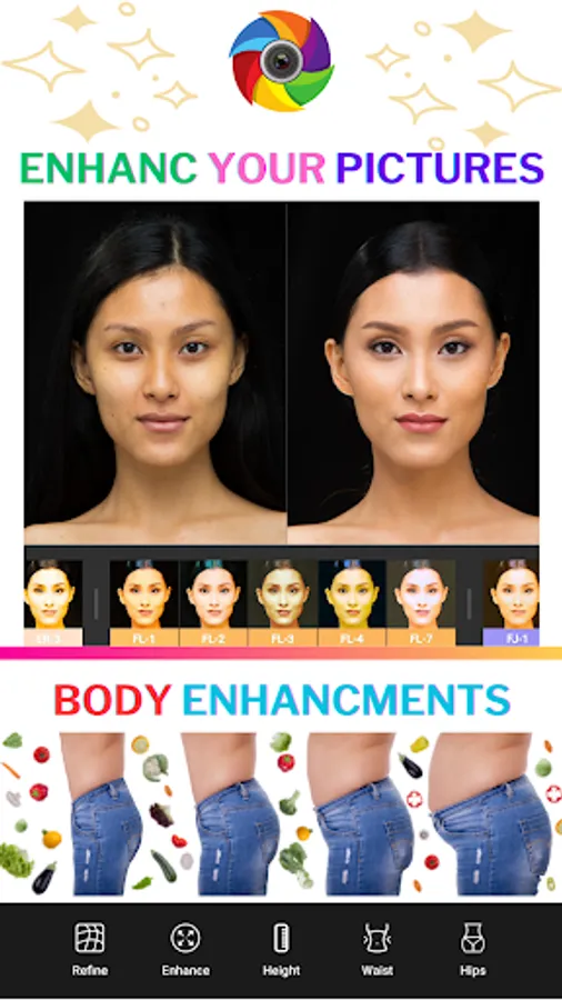 ➧Beauty: Photoshop selfies and reshape your figure with a face and body editor.