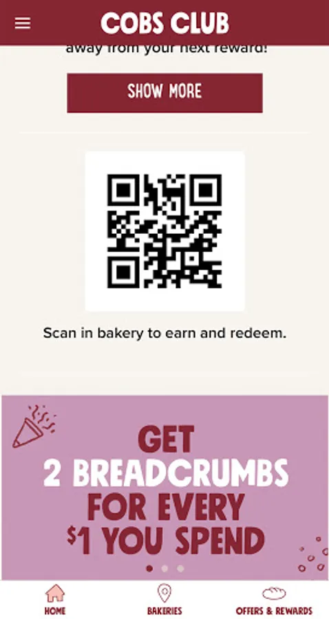 Hungry for sweet deals? Join COBS Club to get exclusive offers and rewards when you shop at COBS Bread! Collect Breadcrumbs with each purchase and redeem them for rewards that you can use towards your next visit. Simply scan your app when you checkout at your local COBS Bread bakery.