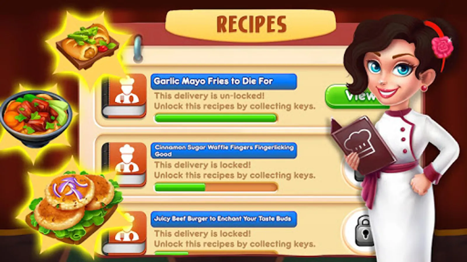 Be a master chef of tasty cooking, enjoy the madness of serving frenzy customers, from one restaurant to another, bakery to the sweet cafe, rush to cook Delicious Tacos, Tasty Burgers, Yummy Continental, Veggie Stuffed Vada Pao & Pizza in the craze kitchen games, sweets & cakes in the bakery, all types of drinks in coffee games & serve the most delicious fast food all over the world in the latest cooking simulator restaurant - chef cooking games. The new time management drive thru games have hundreds of levels to beat and unlimited entertainment with its simple and fast-paced gameplay.