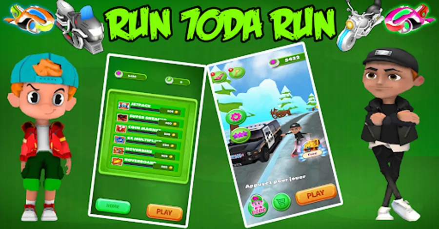 The player runs through the railway tracks to escape from the inspector, and while running they catch gold coins and many other items along the way that help them collect more coins while escaping.