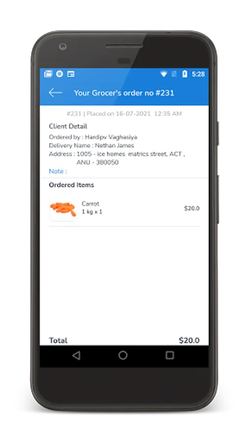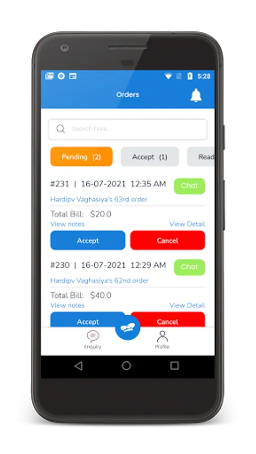 - After adding item in the cart, its easy to add the delivery order and they can place the order, also this app will give us facility of real time chat between them and Supplier for asking any queries related product, delivery and price