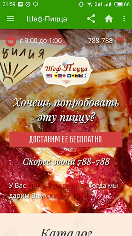 The official pizza delivery application: Chef Pizza Murmansk.