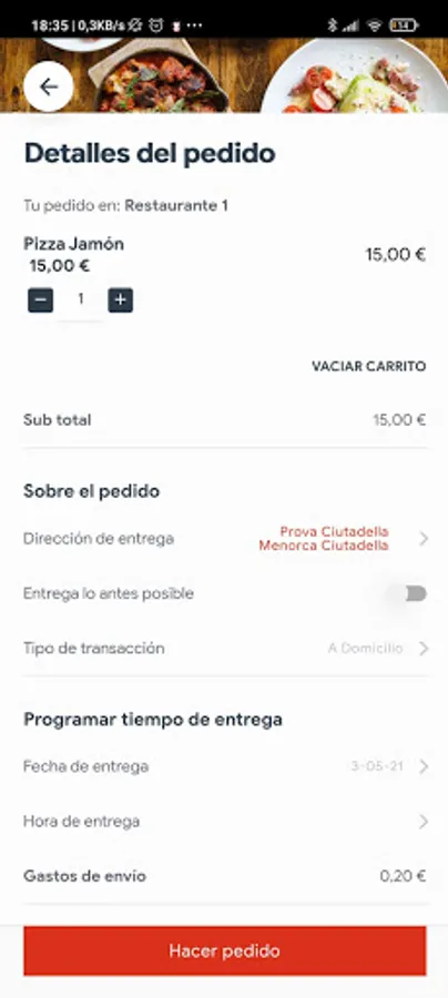 Podrás encontrar los restaurantes de tu pueblo o ciudad y pedir su comida de una forma fácil e intuitiva con esta aplicación. Puedes pagar en efectivo cuando venga el repartidor, con tarjeta al repartidor o de forma cómoda, con tarjeta, en nuestra pasarela de pago.