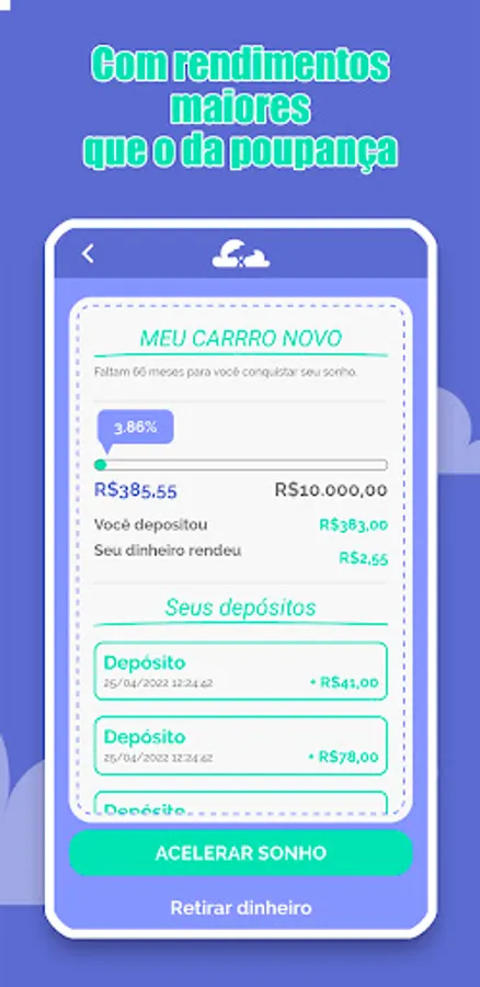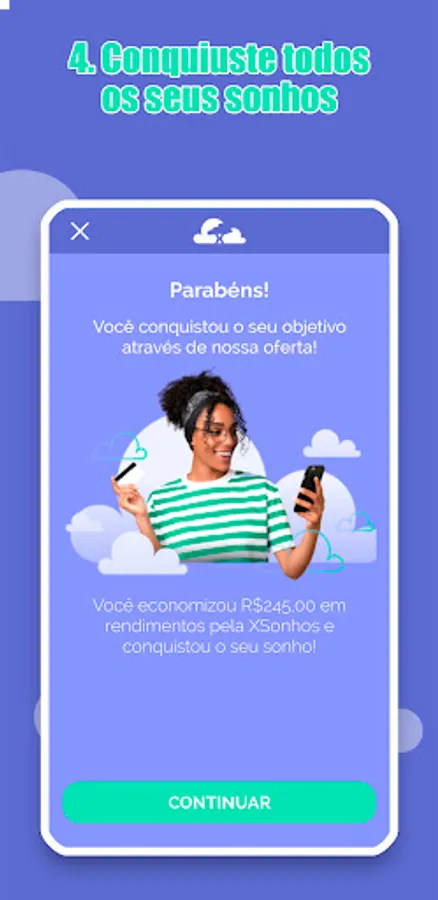 You open your digital account quickly and in a few seconds you can start saving for your dream, whether with a credit card, pix or boleto payment. In the palm of your hand, day by day, you can monitor your income and accelerate your dreams by contributing some extra money or inviting more people to our investment fintech. Our purpose is to educate Brazilians to stop paying interest and receive them, thus conquering more dreams in our journey. Without contraindications and for all ages, xSonhos will train conscious investors in practice, without the need to major in economics or to venture into sophisticated high-risk products to have more profitability.