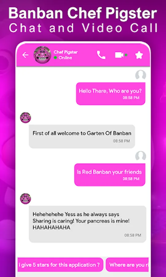 Chef Pigster from Garten of Banban fake video call. Very Scary application with scary Chef Pigster's from famous game Garten banban poppy from FNF. fake video call. Get Video Call and Voice Call from scary Huggy Wuggy friend Wednesday Addams.