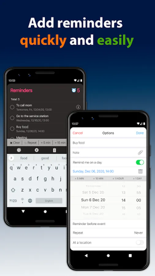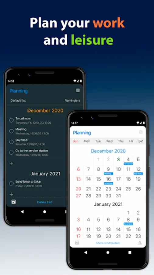 - Enter reminders directly in the list row at one click or voice input
