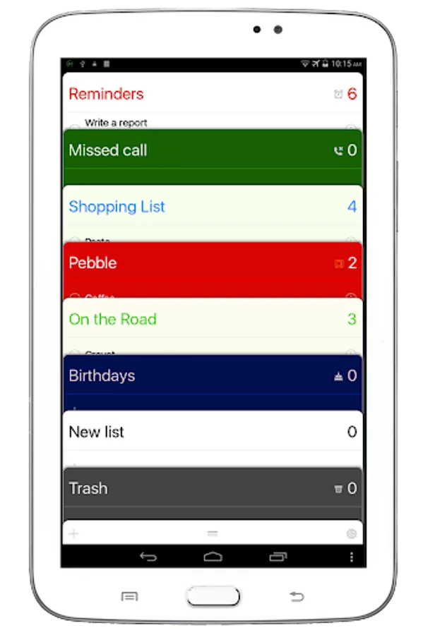 - Lists of reminders, tasks, shopping, missed calls, birthdays and more