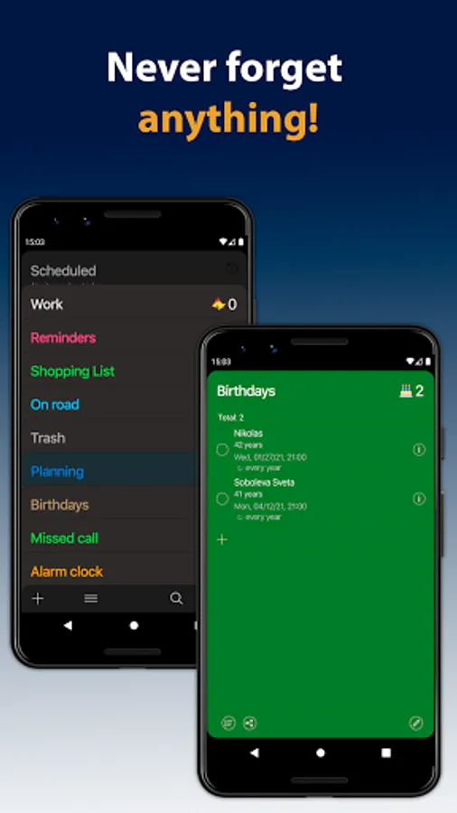 - Nobody will analyze your reminders and then palm off on you the necessary advertising. It can work without the Internet at all.