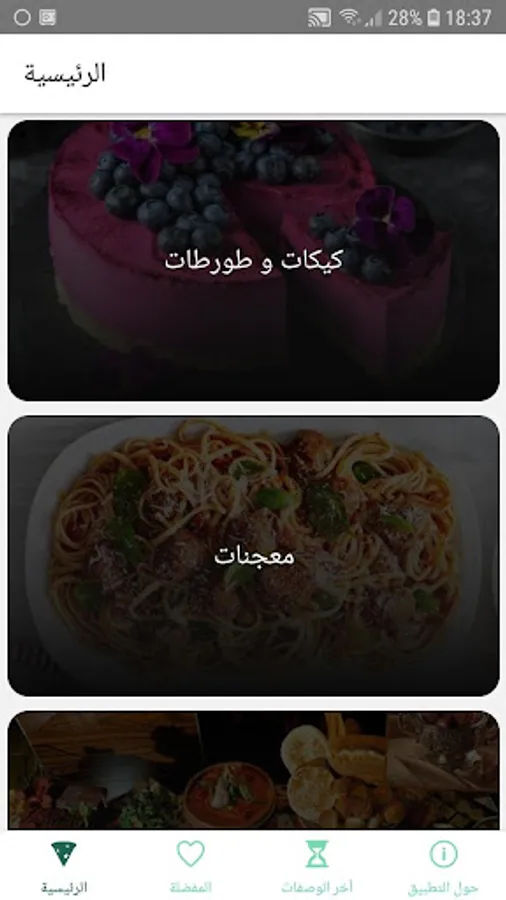 The application contains a favorite page to save favorite recipes