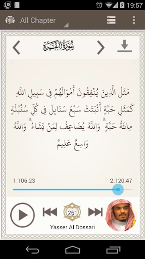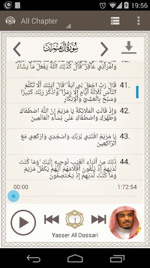 Aya is the application to hear and download the Quran reciters of a number of well-known and is characterized by the application of verse presented at each verse recited with the ability to view all the verses of Surah and verse of choice to complete the reading of them