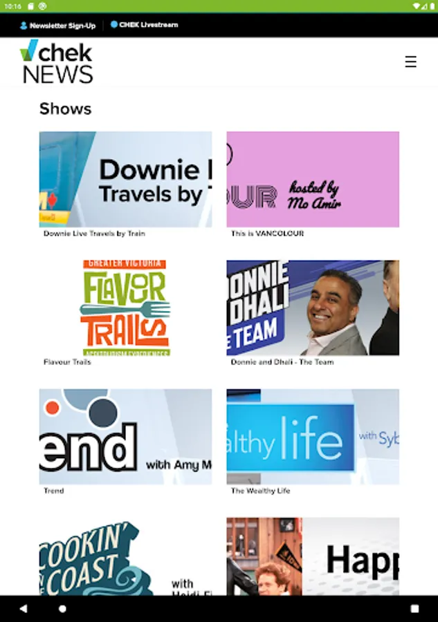 On the app, you'll find a program schedule for all the shows on CHEK TV (formerly CHEK 6).