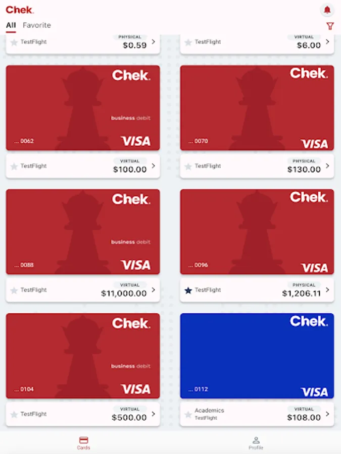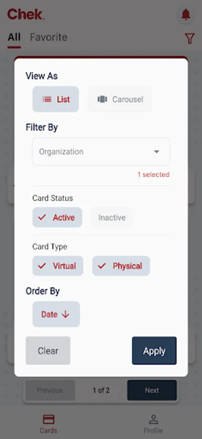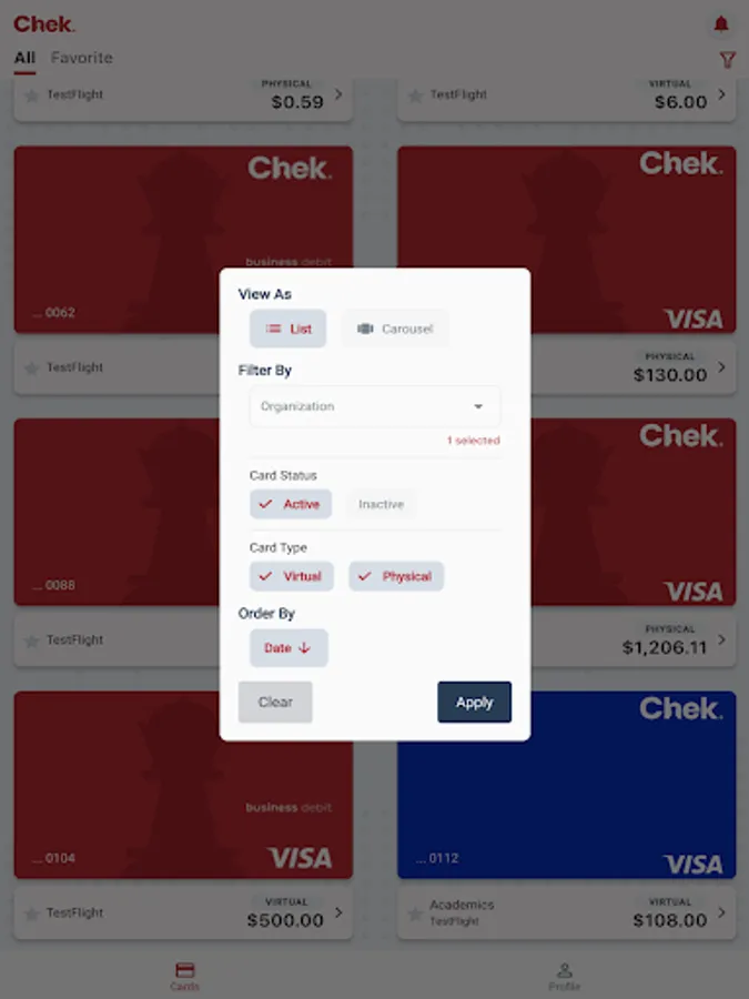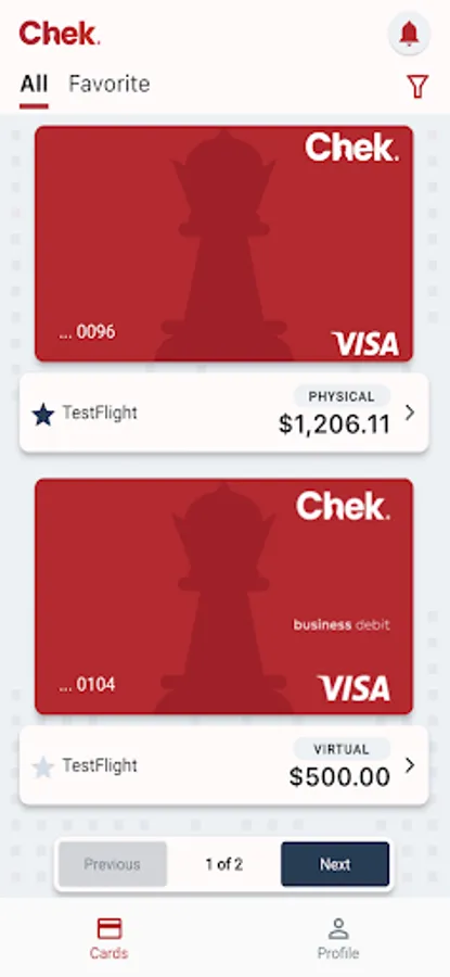 - Access your virtual cards