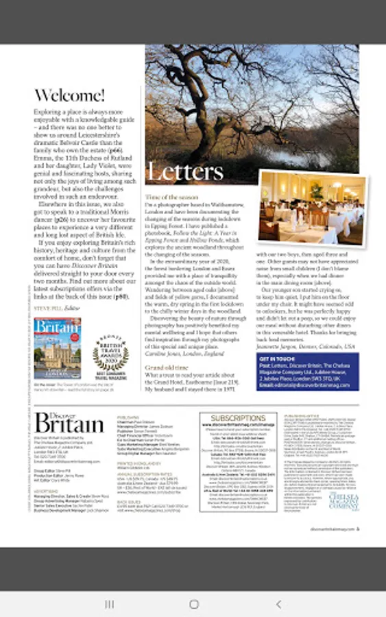 Discover Britain (formerly Heritage magazine) is Britain's leading historic travel magazine, packed with news and features on our finest stately homes and castles, practical guides to our cities, coast and countryside and in-depth articles on our culture and traditions.
