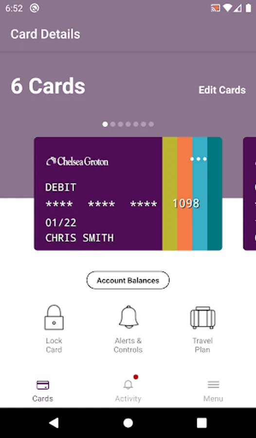 Empower your debit card like never before with Chelsea Groton Smart Card! With Smart Card, you have the ability to manage your card, your way. Turn your card on or off, set spending limits, customize alerts, restrict your card to only allow purchases where you are, and more. Here are some of the benefits you’ll experience with Chelsea Groton Smart Card.