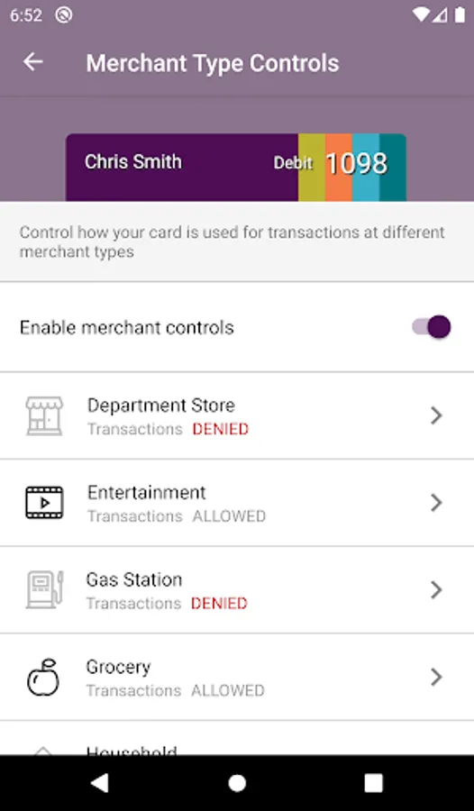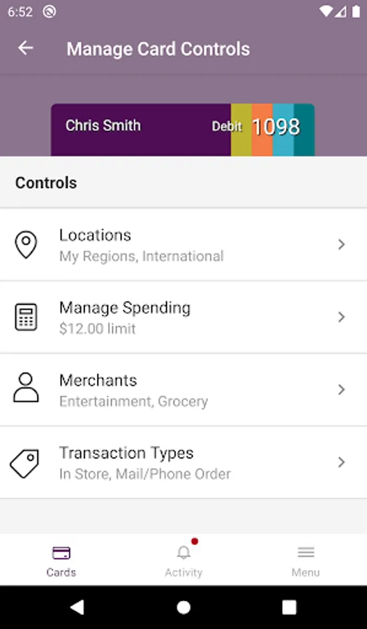 Keep your card safe from unauthorized purchases by restricting international purchases, certain merchant types or by your location using location services.