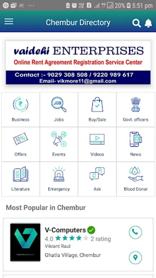 It is how “Chembur Directory” is one of the Mobile Application which is came into existence with intention of bringing all the businessman’s together on single application which will help them to advertise and promote their business at local level and instead of registering on different-different portal for every need i.e. for advertisement, recruitments, services, buy and sell, local real-estate details, local authorities, emergency contacts, government offices, etc. they will get all this service on single click on this app. This application is nothing but a combo pack of all the market single user or service provider applications and definitely it will help every citizen of the Chembur to grown together, because “Jo Sahi Hai, Wo Sab Yahi Hai !!”...