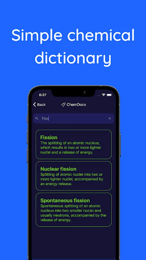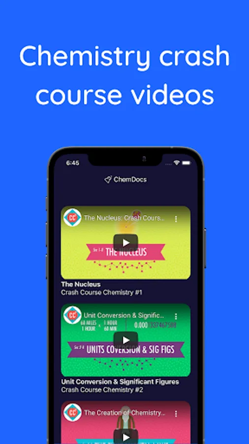 ChemDocs allows you to look into chemical formulae, elements of the periodic table and chemical definitions. Get access to a playlist of helpful chemistry videos for a quick revision! With the simple and handy interactive lists, you can now look up basic chemistry information quickly.