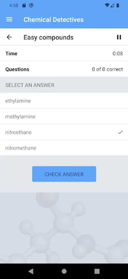 In Chemical Detectives you can set up a challenge between classmates and friends. Set the timer, and the number of problems, then GO! You can also choose from easy, medium or hard, which toggles between multiple choice and full text-entry, which is the best way to master your naming skills. Maybe even challenge your teachers!
