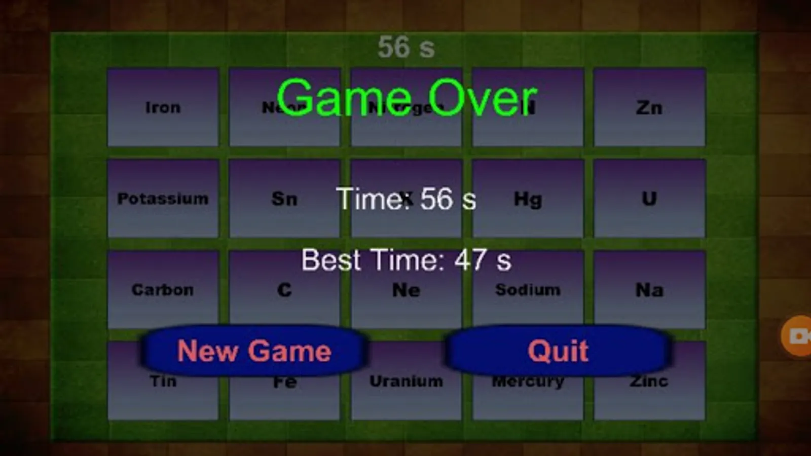 In this game, you practice remembering the chemical symbols of elements, which is useful in learning chemistry.