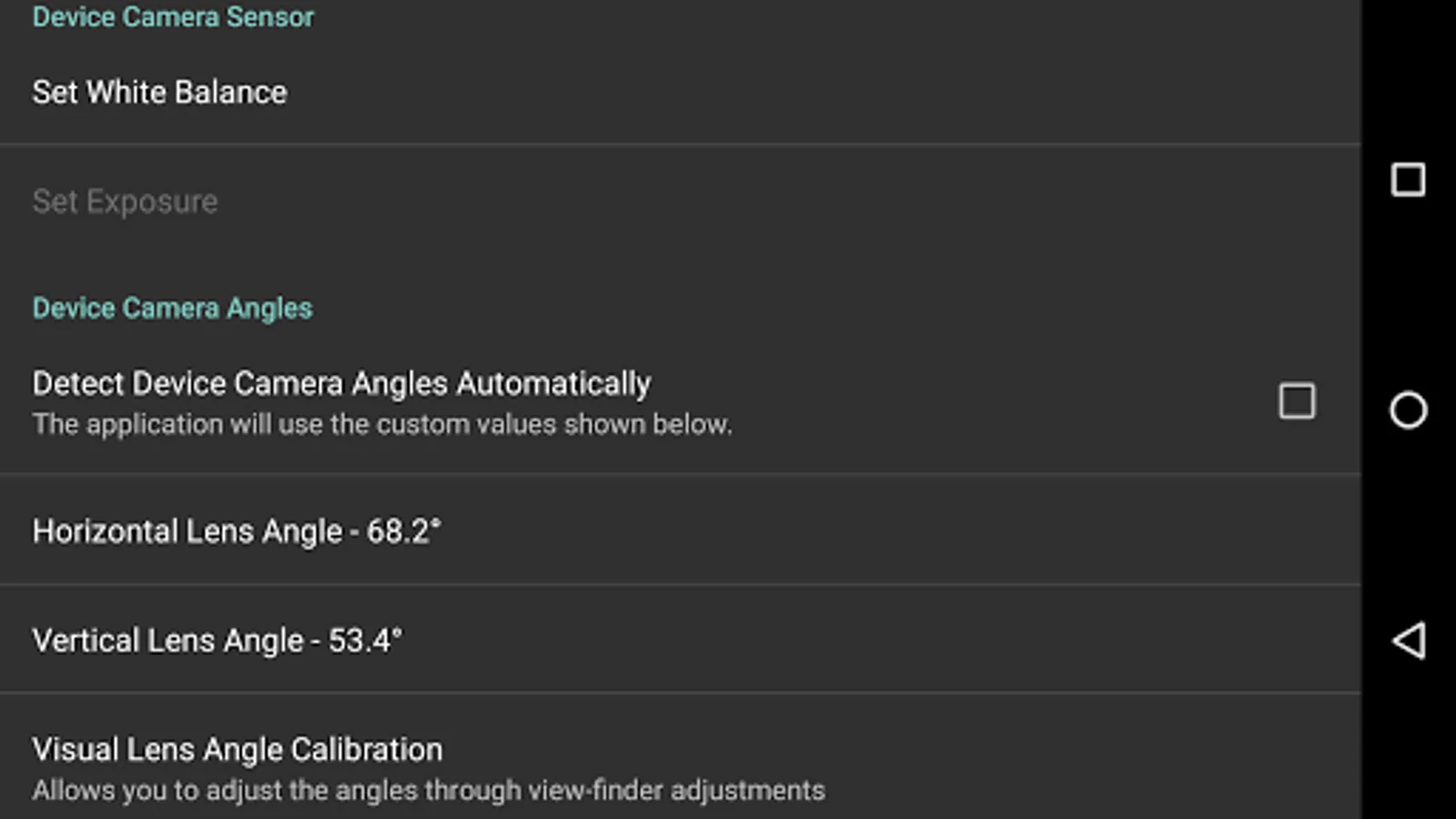 -Some Sony Xperia devices have trouble calculating FOV of on board camera automatically. Manually enter in settings: