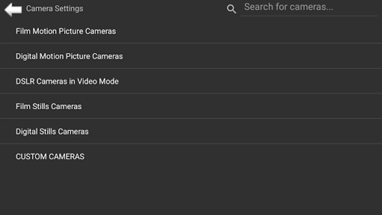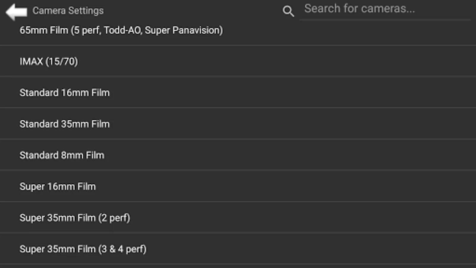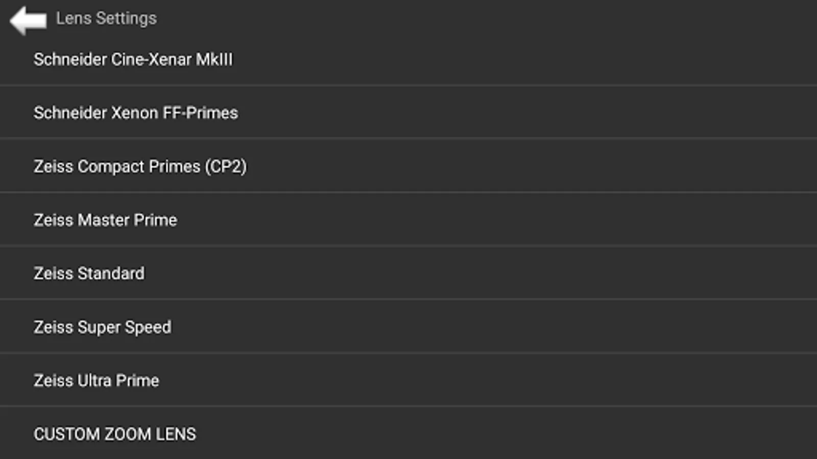 If your camera format or desired lens set isn't included or you believe a camera format isn't working for you, we include a custom camera feature that allows you to configure Artemis to any camera system. You can even send us the format data and we may include it in our next update.