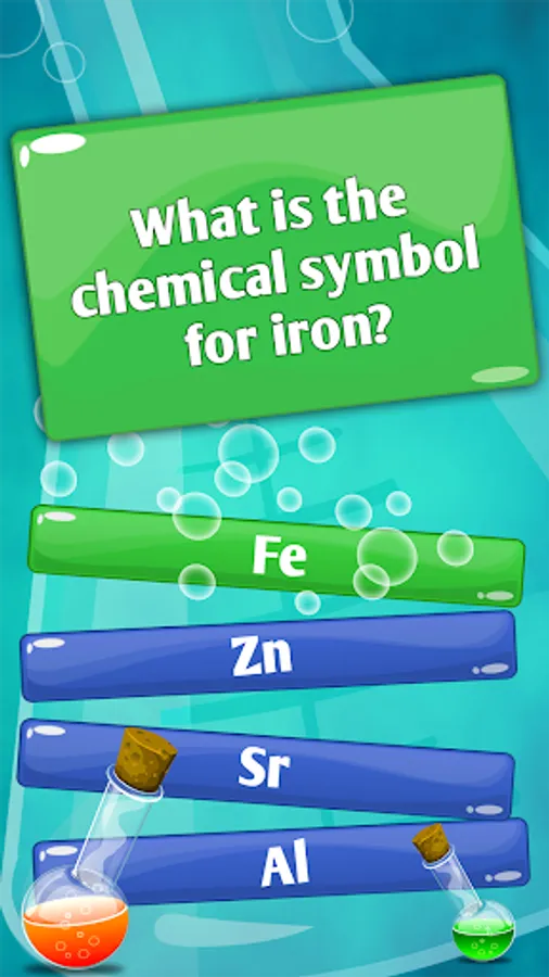 Test your knowledge on chemistry science with the latest chemistry quiz questions and answers! Download Chemistry Quiz Games - Fun Trivia Science Quiz App and show how much you know on atoms and molecules, acids and basis, balancing equations, periodic table of elements and much more. Learning has never been so much fun! Check how much you really know on organic chemistry and inorganic chemistry, chemical formula, vocabulary and all the other aspects of this fascinating subject. Step into the amazing question lab and take the ultimate chemical quiz right now! Try out the most challenging chemistry objective question answer quiz on chemical reactions and equations and fundamental chemical formulas and names.