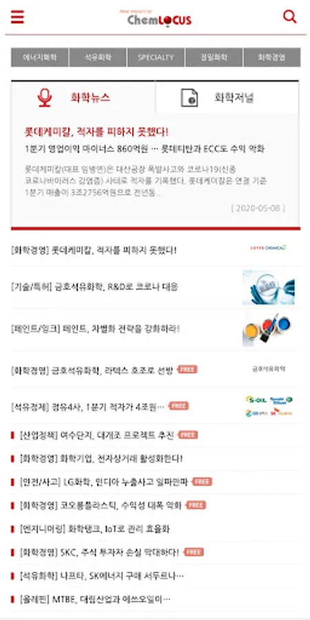 · 최신 화학뉴스와 심층적인 화학저널로 정보가 구분되어 제공됩니다.