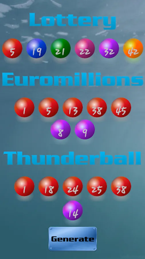 Generate random numbers to use when picking numbers for the National Lottery, EuroMillions or Thunderball.