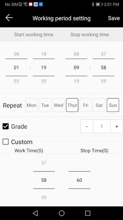 2) Select the time, days, and scent intensity you want the diffuser to run. You can have different intensities for different times and days. For example, you can make it run from 9AM to 9PM on Monday-Friday at a certain intensity, and at different intensity or off in certain different days and times.