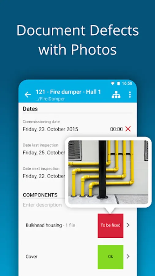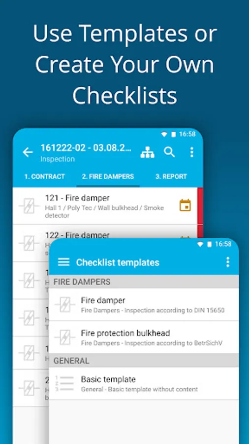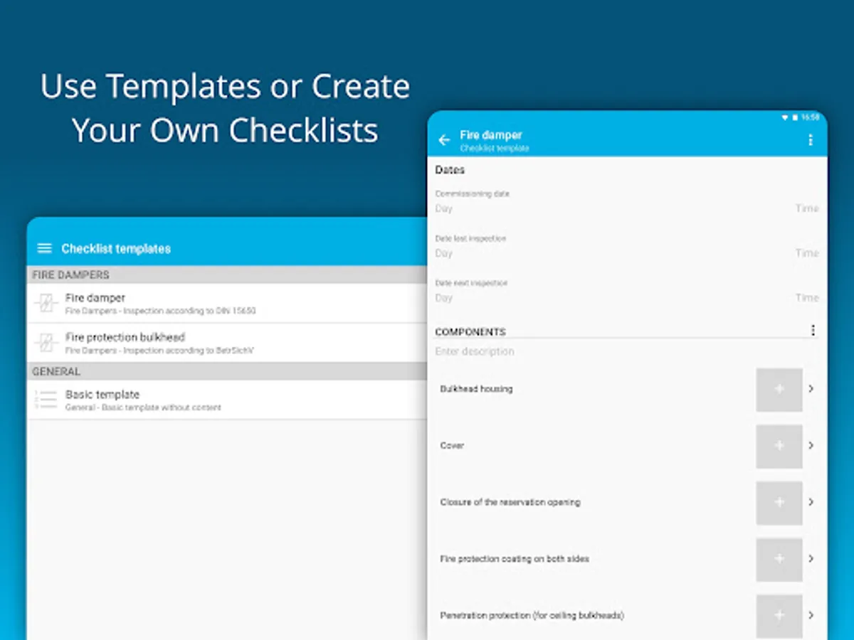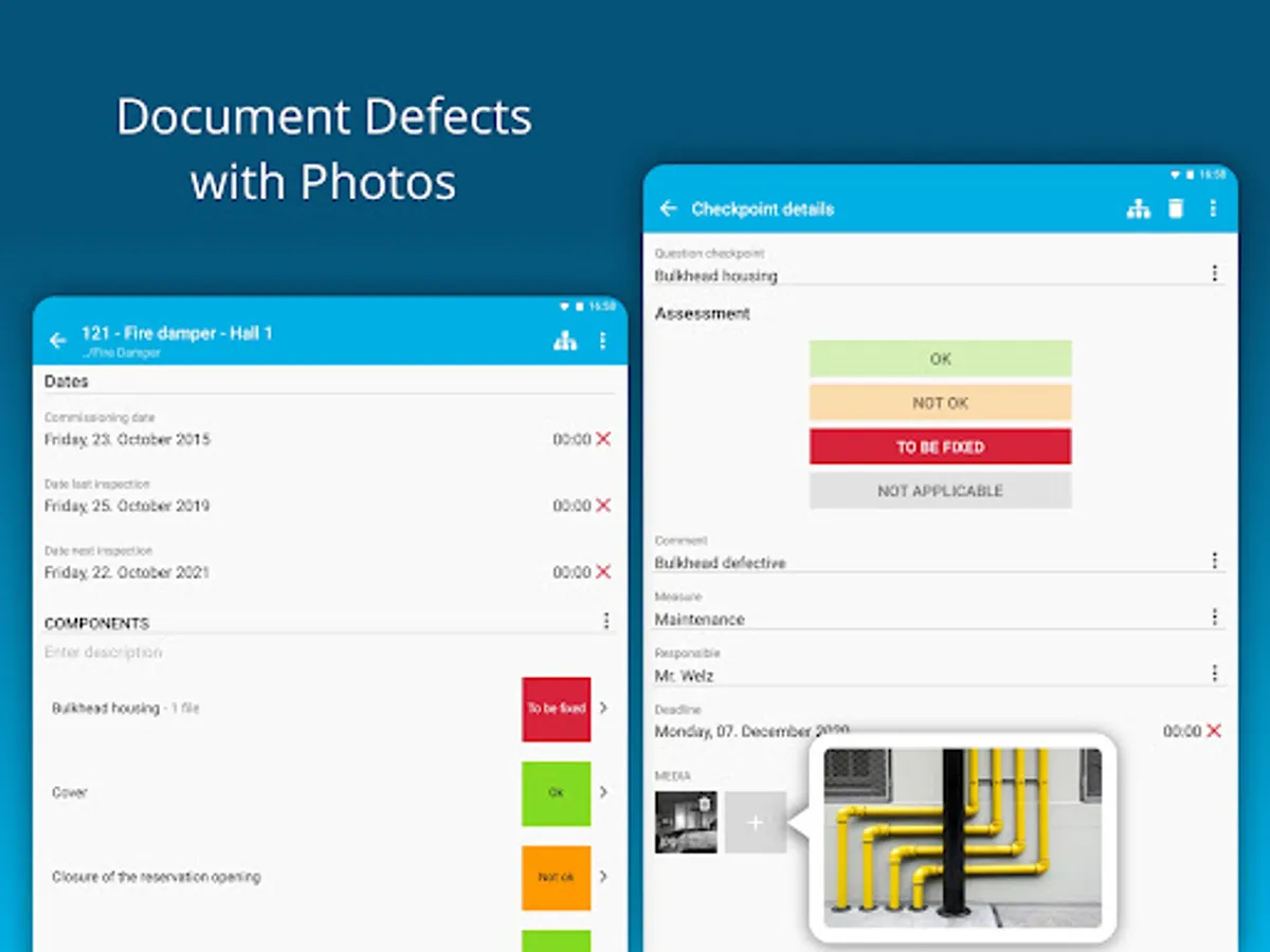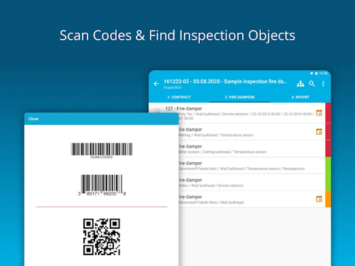 This is the CHEQSITE app for inspecting fire dampers and fire protection bulkheads in accordance with DGUV, DIN, OSH & HSE PUWER regulations. Includes among others DIN 15650 and BetrSichV.