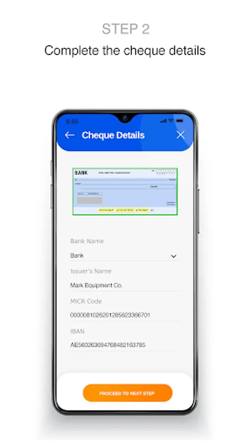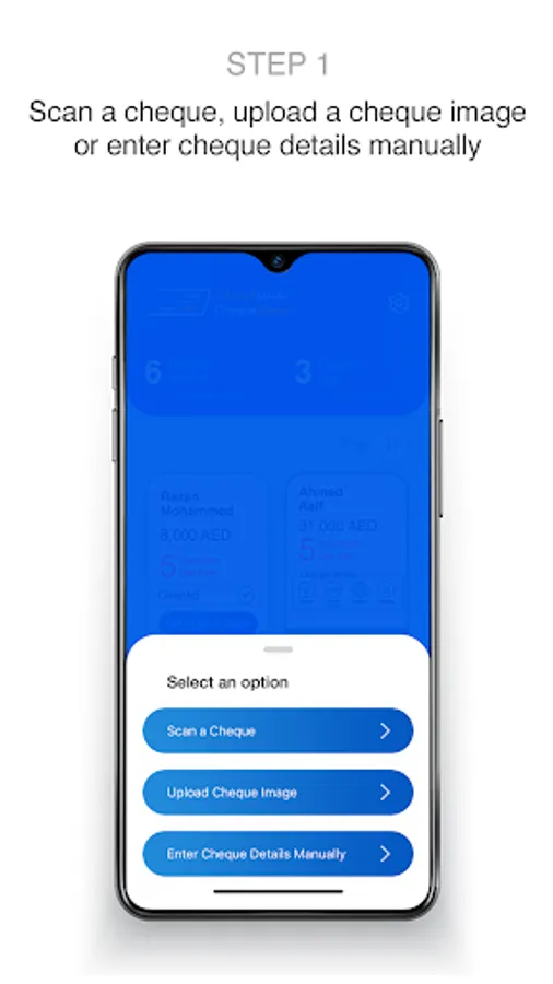 1. Scan a cheque, upload a cheque image or enter cheque data manually