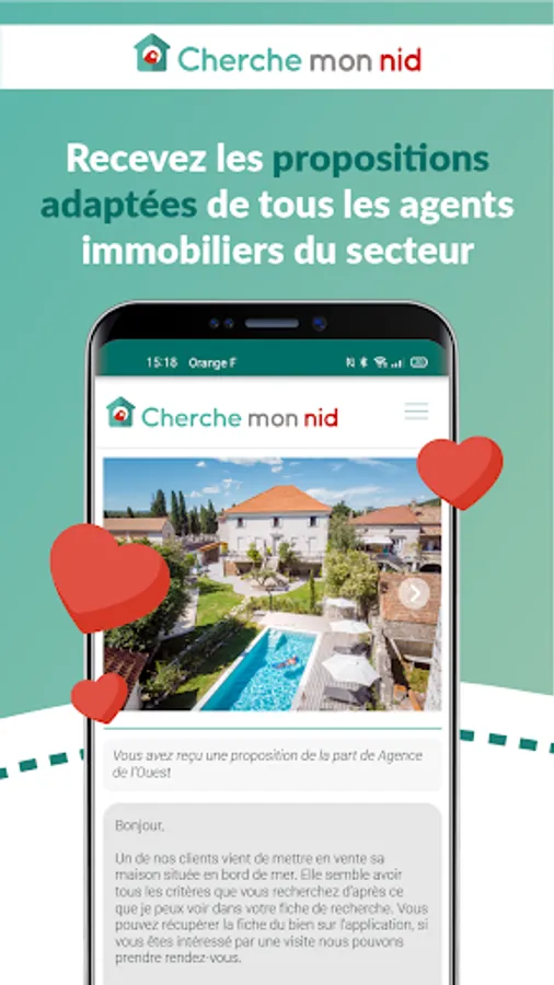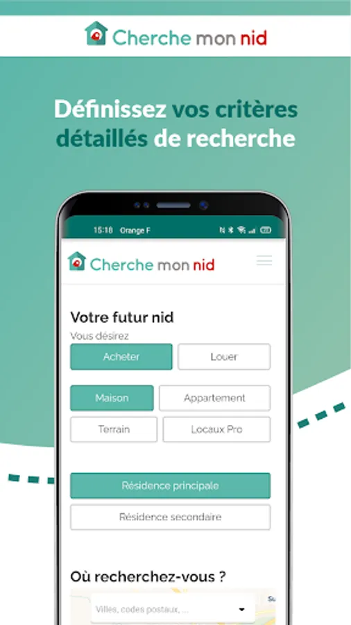 No more going through dozens of real estate ads or visiting properties that don't suit you! On the Cherche Mon Nid app, in 3 clicks, create the free detailed file of your real estate project, we send it to all the professionals in your geographical area.