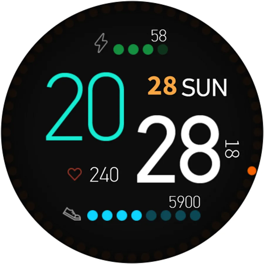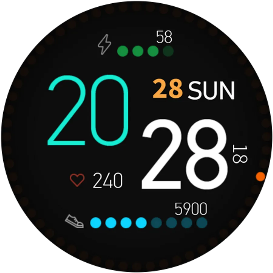 This dial is suitable for active people. The step scale is programmed for every 1250 steps (one division), which allows you to reach the daily goal of 10,000 steps. Without unnecessary overloading information, only the most important is displayed on this dial. This watch face is suitable for Samsung watch 5, Samsung watch 4 and other compatible watches.