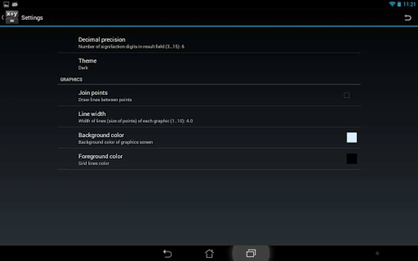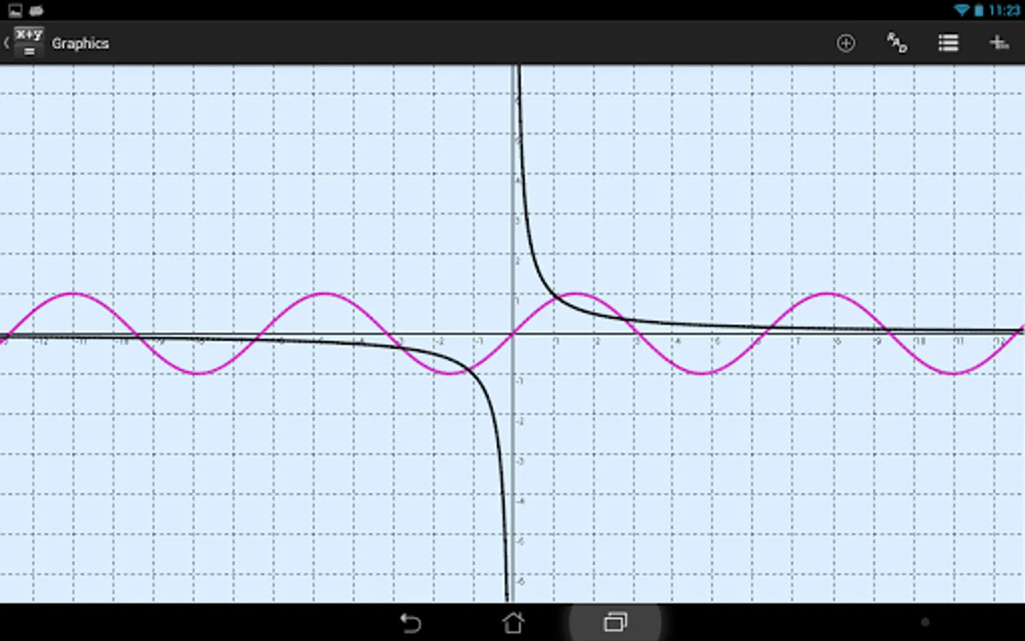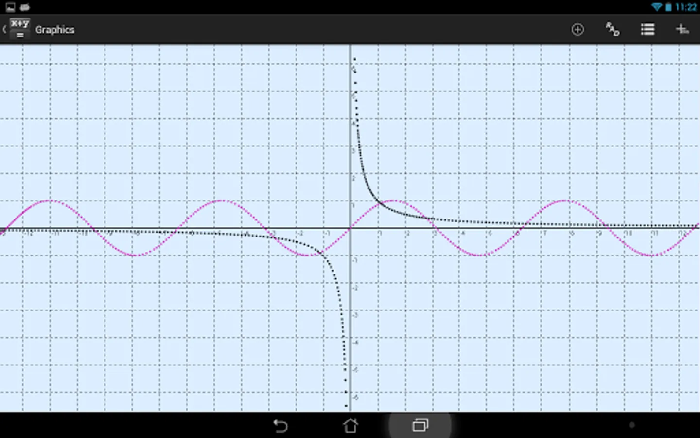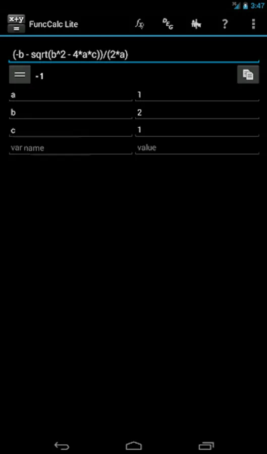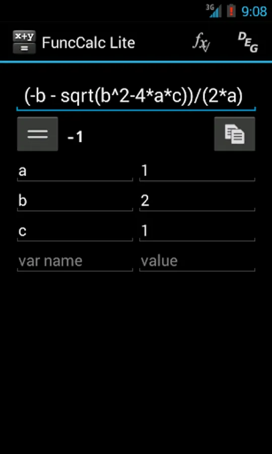 It is a simple, but powerful calculator. The main function of the software is calculation on the given formula. To do this, just type in an expression, variables to be used and press the button ‘=’. Besides, it is possible to draw function graphs, with multitouch supported within this mode. Apart from ordinary operators you may use trigonometric and hyperbolic functions.