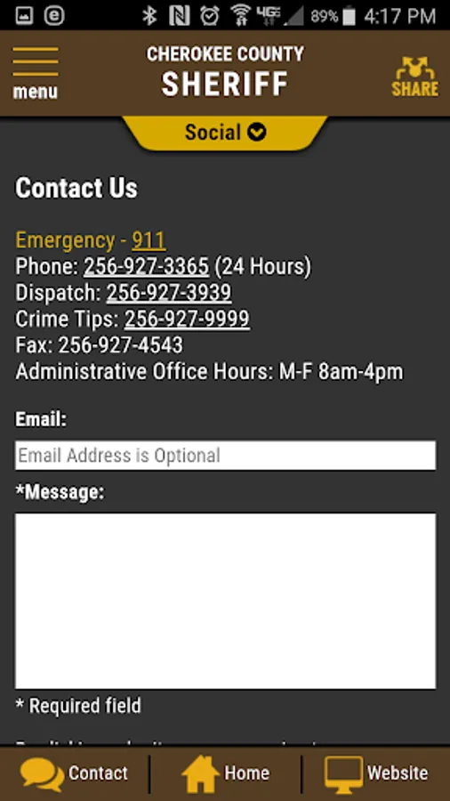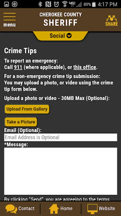 The app has public information for press releases, inmates, most wanted and sex offenders. Crime tips and contact us messages can be sent to the Sheriff's Office.