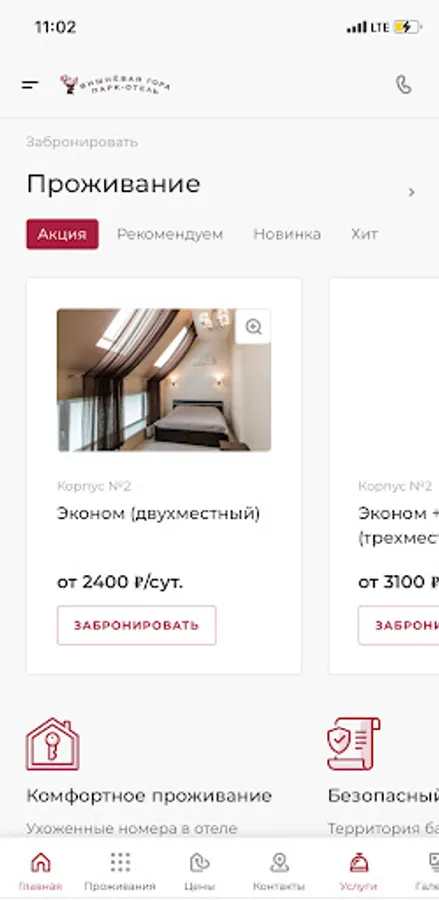 Thanks to the Cherry Mountain mobile application, you can easily book a hotel room, order additional services or contact the hotel reception. You will have access to: current numbers for booking