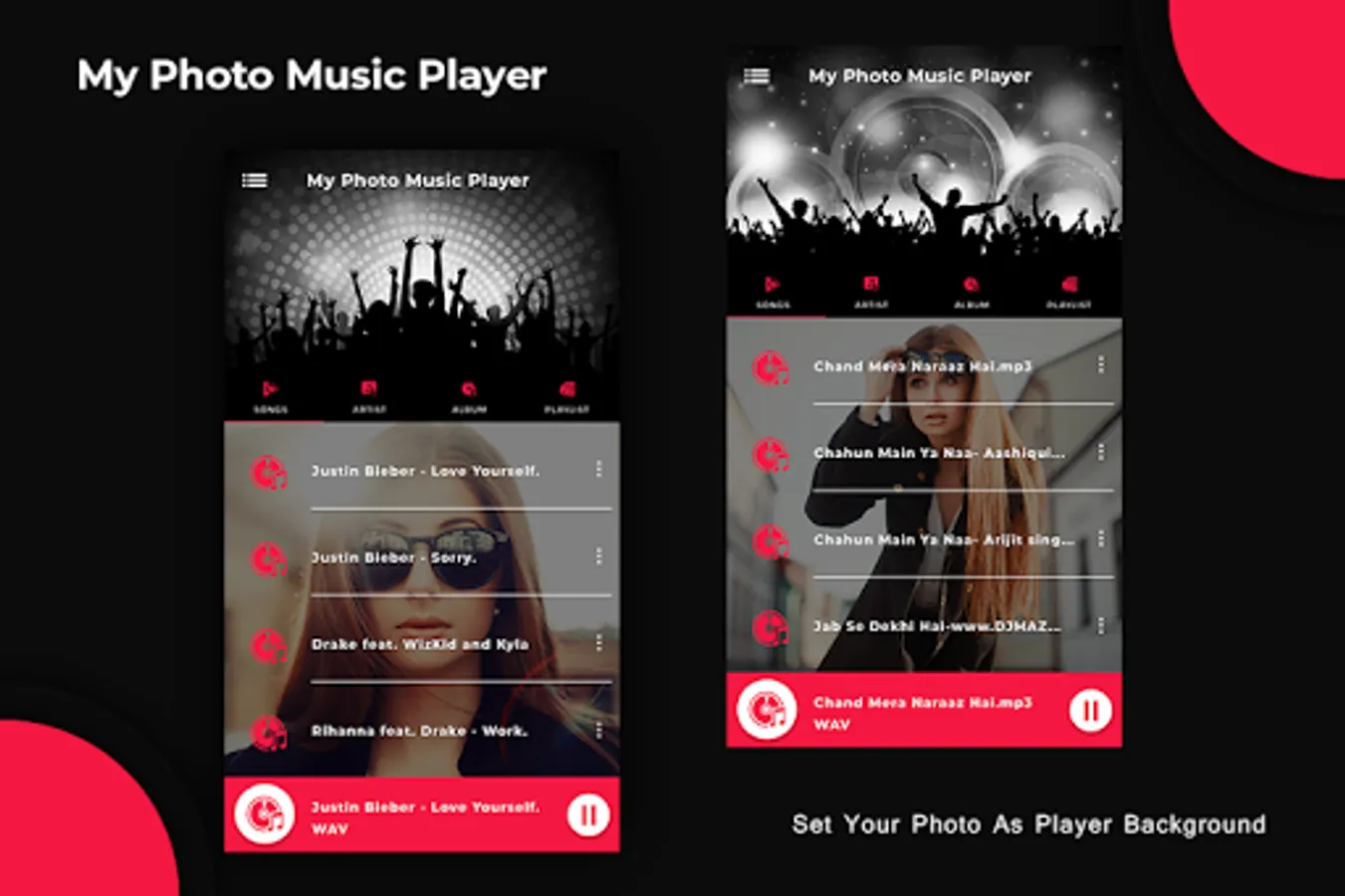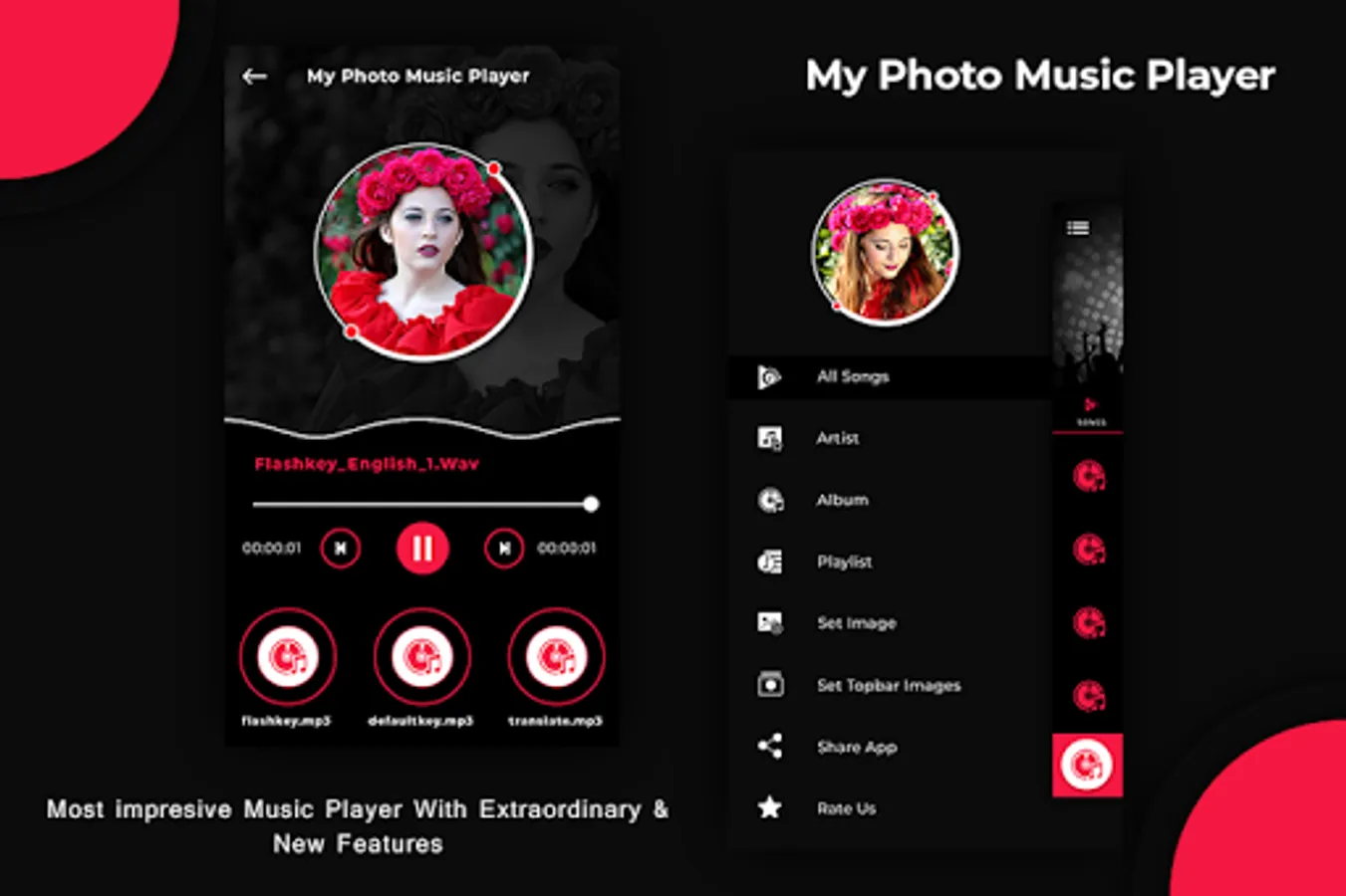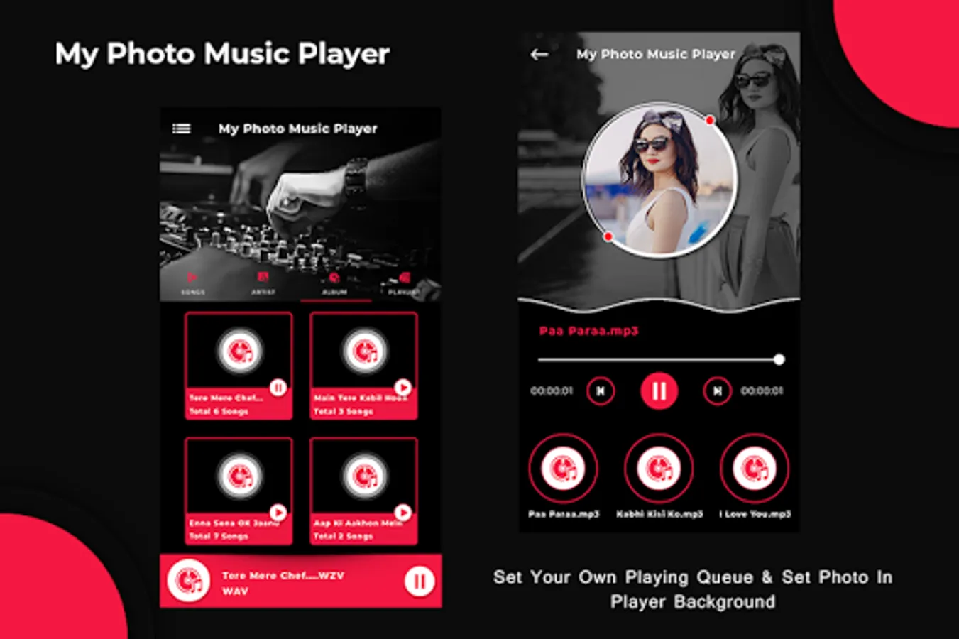 MP3 Music Player - Photo Music is an amazing concept of photography in music player to set your photo or your lover photo whatever you like to set you can set easily.