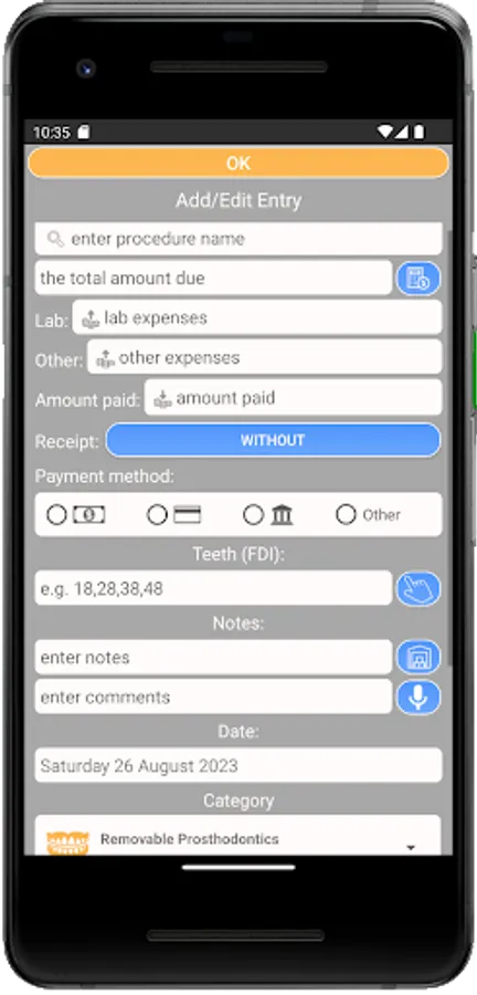 ★ Detailed list with patient payments & treatments, pending payments, annual report with incomes, expenses, bills and net profit. Printing to WiFi printer / export as PDF.