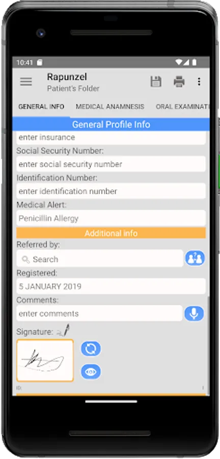 ★ Photos and radiographs albums with image compression and sharing options. Save and open STL files (scanner files). Recording of patient's signature.