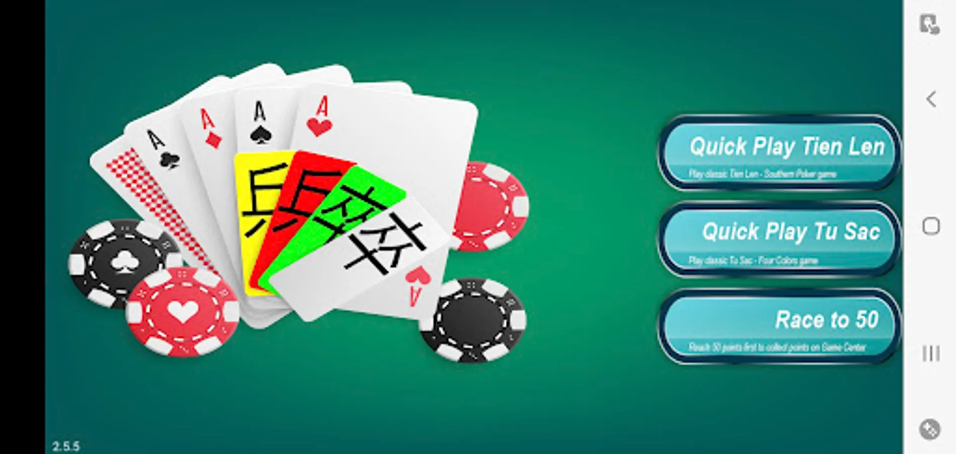 Tu Sac (Tứ Sắc - Four Colors) is a popular Vietnamese game played with chess cards. The objective of the game is to organize a hand of cards into a combination of valid Tu Sac sets of cards through a process of melding new cards into the hand and discarding out trash cards. It is known as Si Se Pai (which also means four colors) in Chinese.