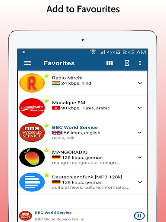 ● Add to favorite to your best radio station
